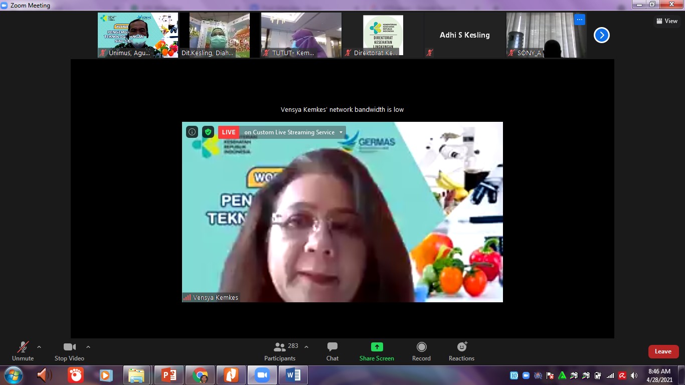 Dr Agus Suyanto STP MSi menjadi narasumber dalam Workshop Pengembangan Teknologi Pangan Siap Saji yang diselenggarakan oleh Dirjen Kesehatan Masyarakat Kementrian kesehatan RI, Rabu 28 April 2021. Acara workshop yang diikuti oleh 875 peserta dari seluruh Indonesia petugas kesehatan lingkungan di dinas kesehatan propinsi, kabupaten dan kota seluruh Indonesia, juga kalangan dosen dan peneliti dari berbagai perguruan tinggi dan lembaga penelitian. Acara workshop dilaksanakan hybrid offline dan online, dibuka oleh Direktur Kesehatan Lingkungan Kemenkes RI drg Vensya Sitohang M.Epid. dalam sambutannya disampaikan, “Tujuan workshop adalah untuk mendapatkan informasi terkait pengembangan bidang pangan siap saji dari segi teknologi maupun kajian teknologi dari perguruan tinggi yang sangat dibutuhkan oleh petugas kesehatan dan masyarakat.”