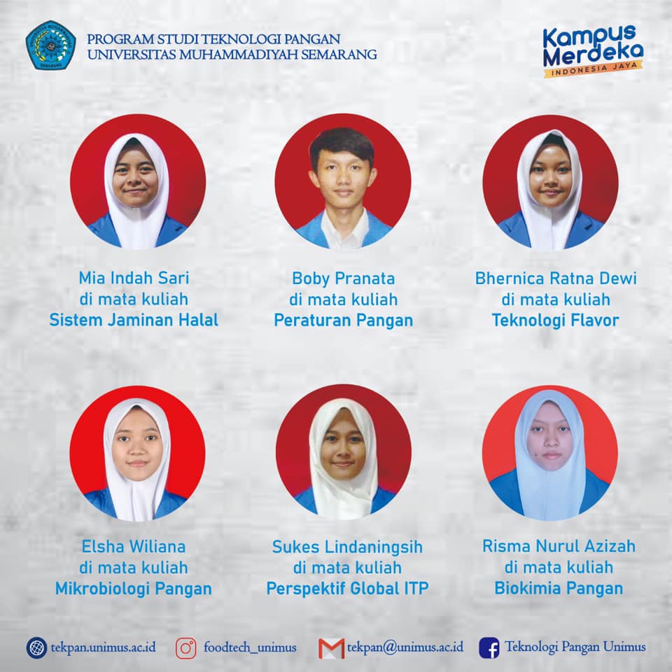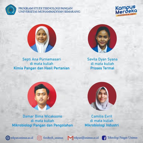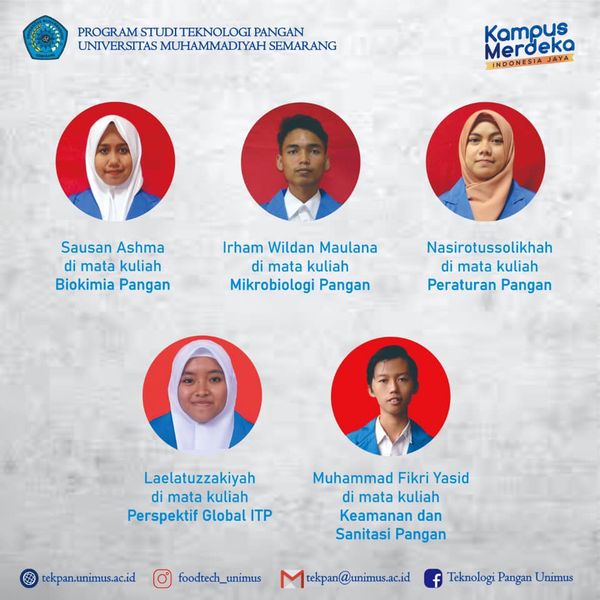 Selamat kepada 15 Mahasiswa/i Program Studi Teknologi Pangan UNIMUS yang diterima pada Program Pertukaran Mahasiswa Pangan & Hasil Pertanian (PERMATA PANGAN) 2021 dengan rincian 11 di kampus IPB dan 4 di kampus UGM.